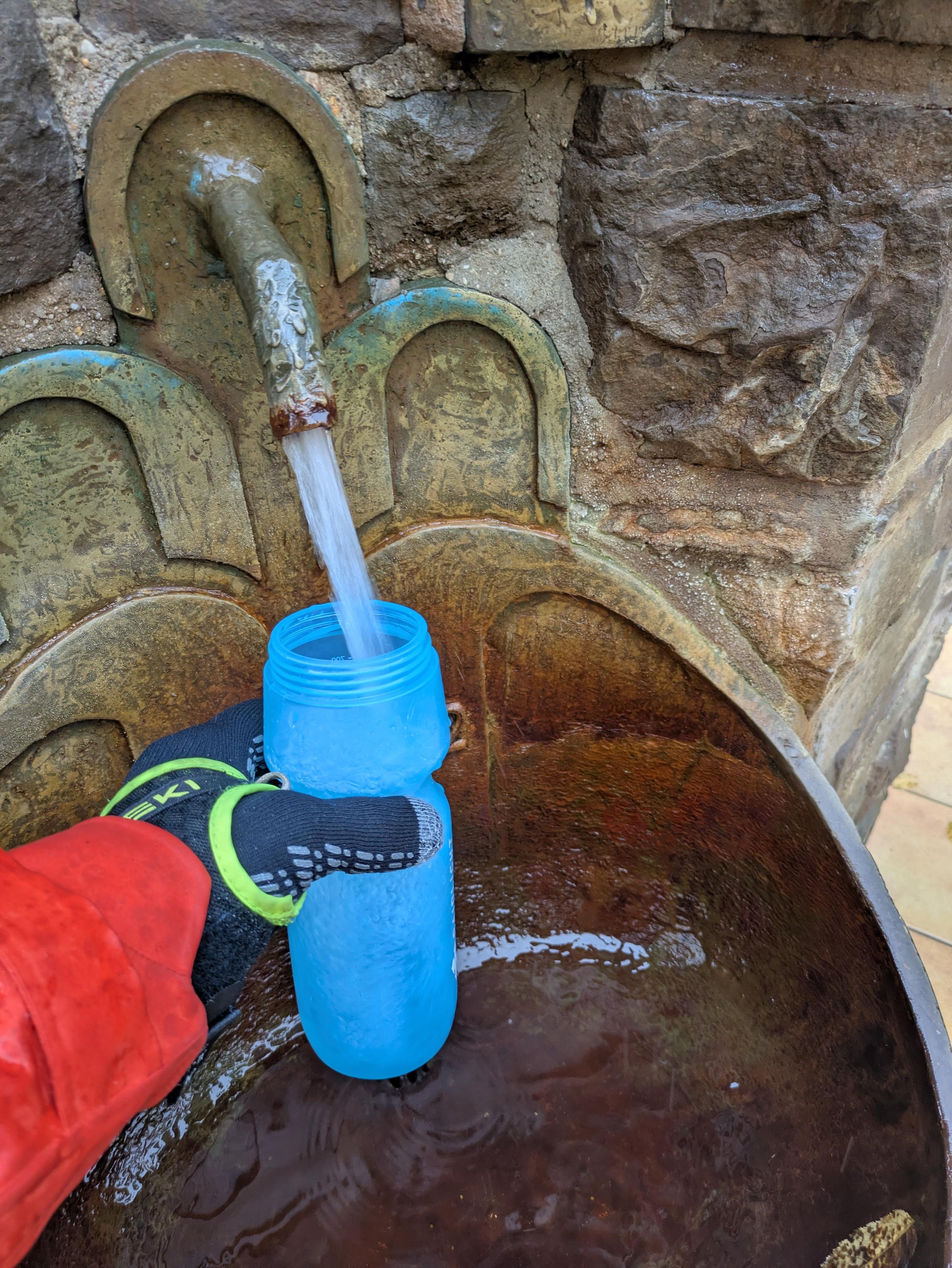 Waterpunt Monschau. Helaas is het betalend met munten, die ik niet bij heb. Ik heb nog wel wat water, dus ik ga verder.