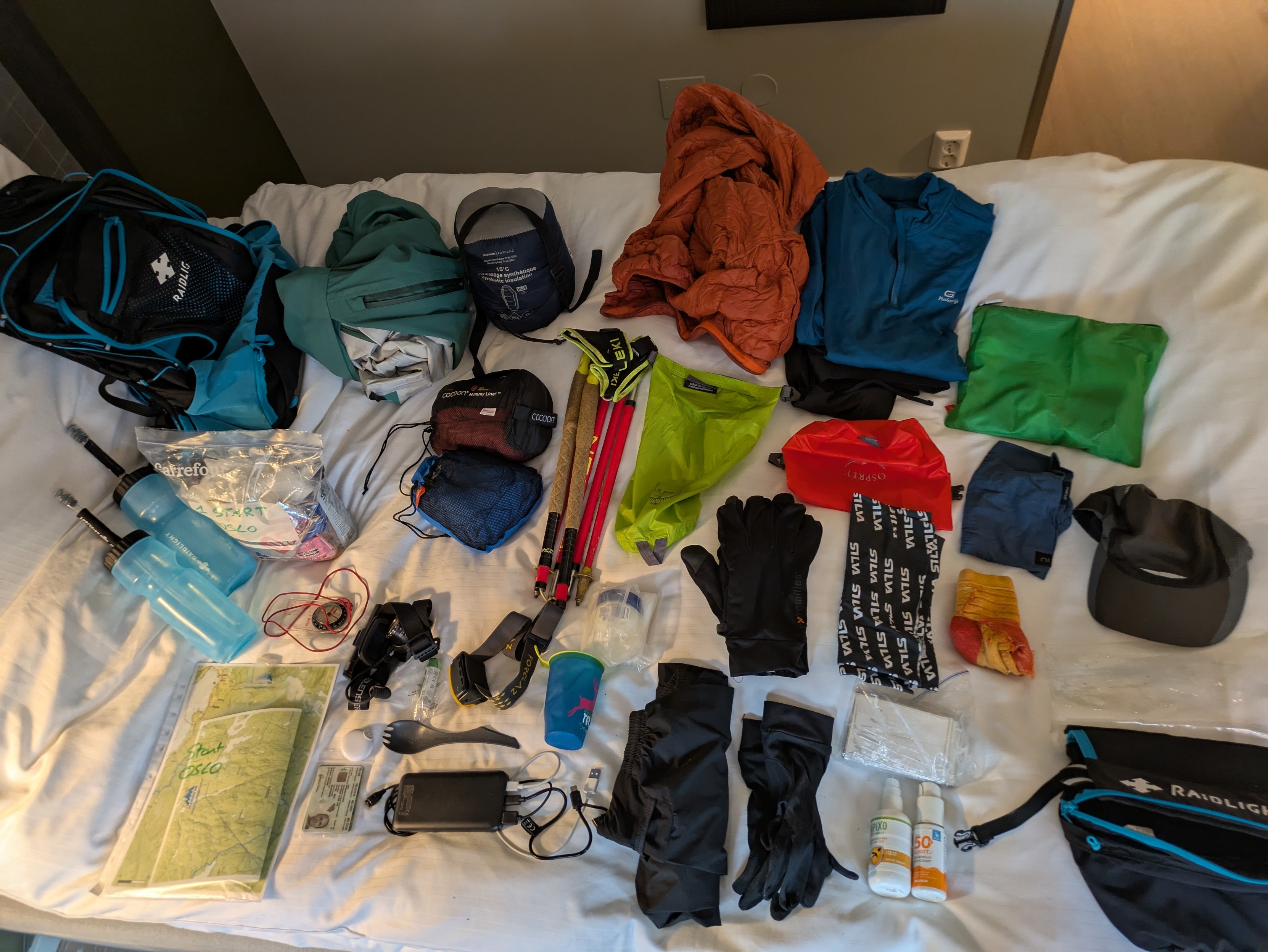Along the way there are 8 check points where I can get supplies and possibly sleep. For the rest, I am self-supported. My pack with all the mandatory kit and the necessary food and drink weighs about 9kg.